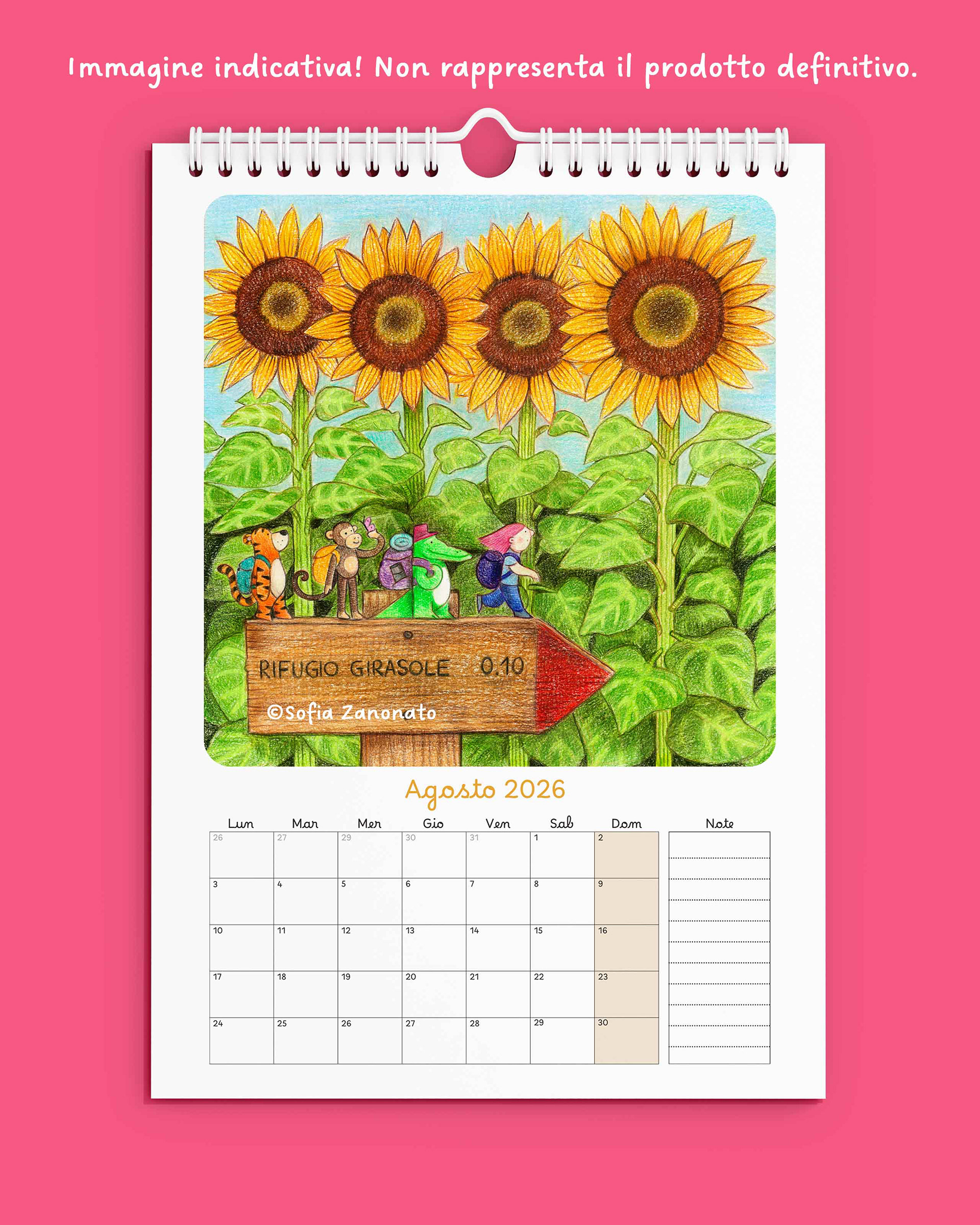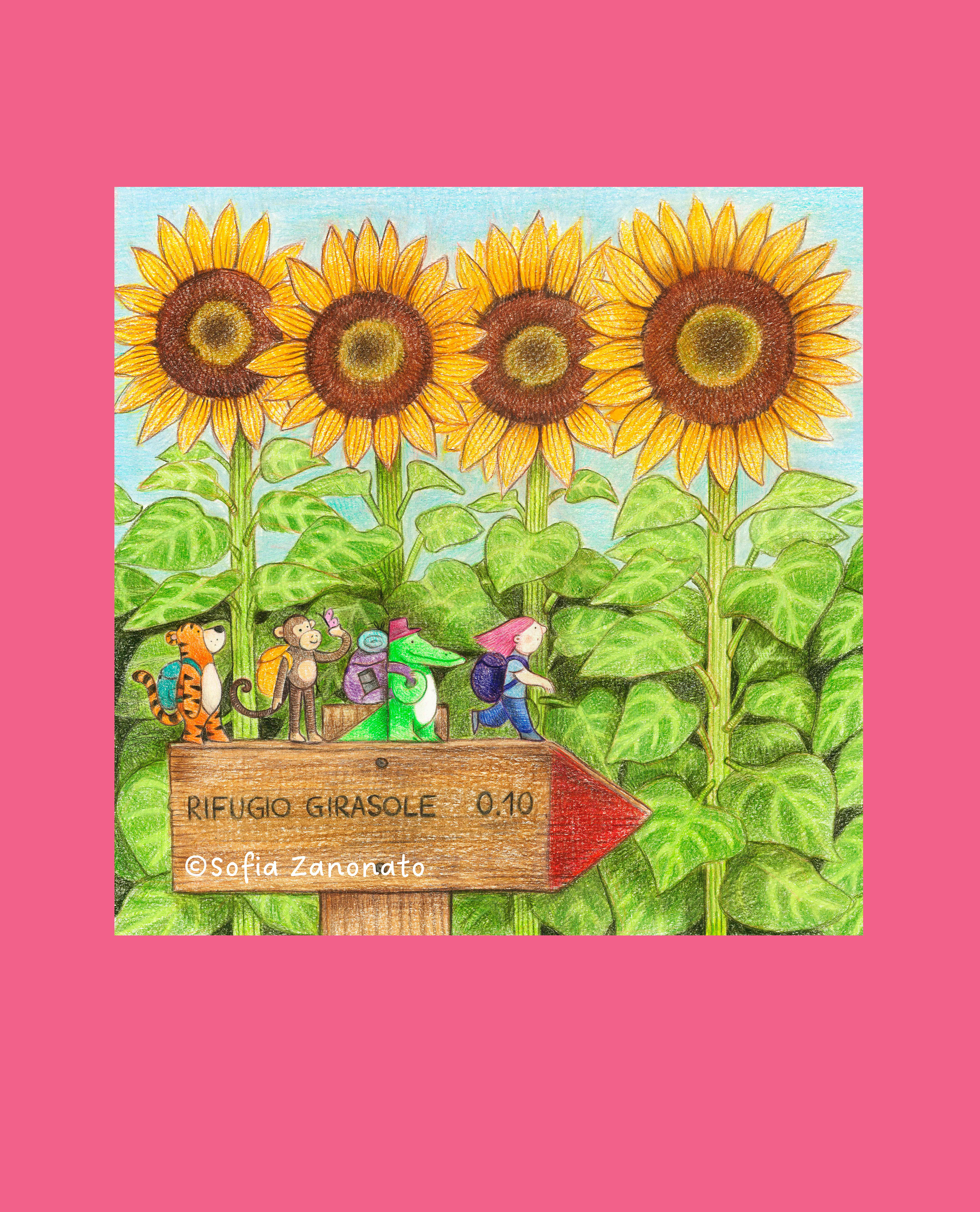 Tiger, Crocodile, Monkey, and Rosa will accompany you throughout the year with a series of illustrated adventures. In August, you’ll find them crossing a sunflower field. Curious to find out what happens in the other months? Stay tuned for all the updates!